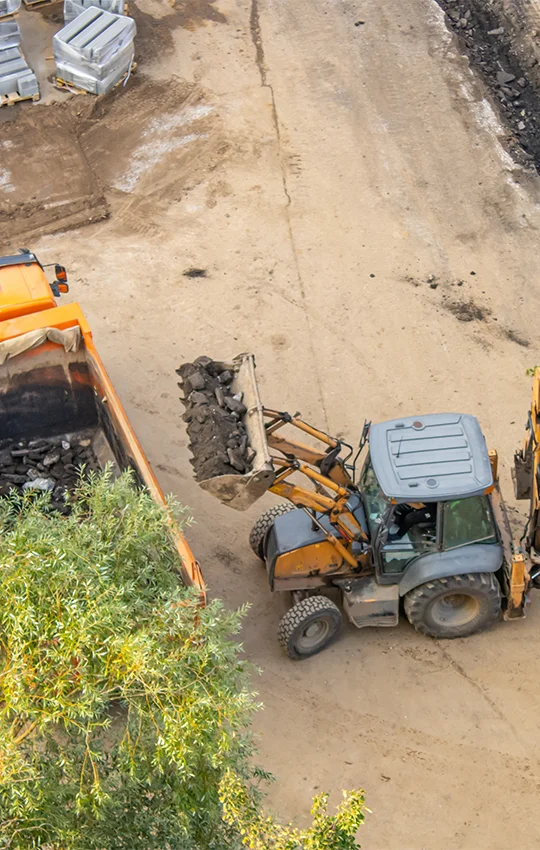 Zajišťujeme nakládku vykopané zeminy, stavebního odpadu nebo jiného sypkého materiálu na nákladní vozidla. V případě potřeby můžeme zprostředkovat odvoz přebytečné zeminy na skládku nebo její přesun v rámci staveniště za účelem pozdějšího zásypu a finálních úprav terénu.
